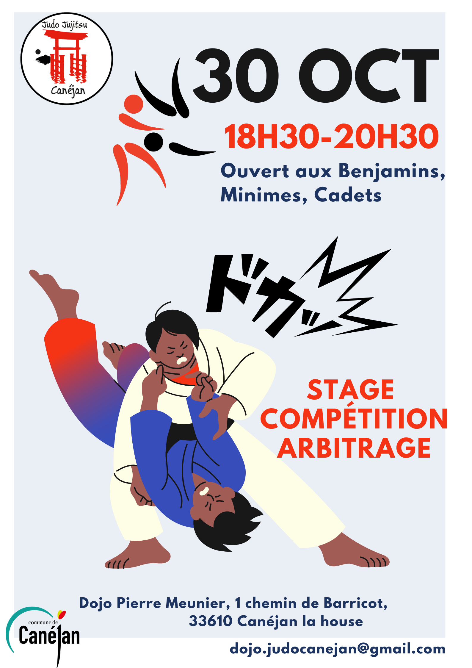 Inscription sur place ou sur https://judo-canejan.fr/calendrier (en se connectant à son compte).