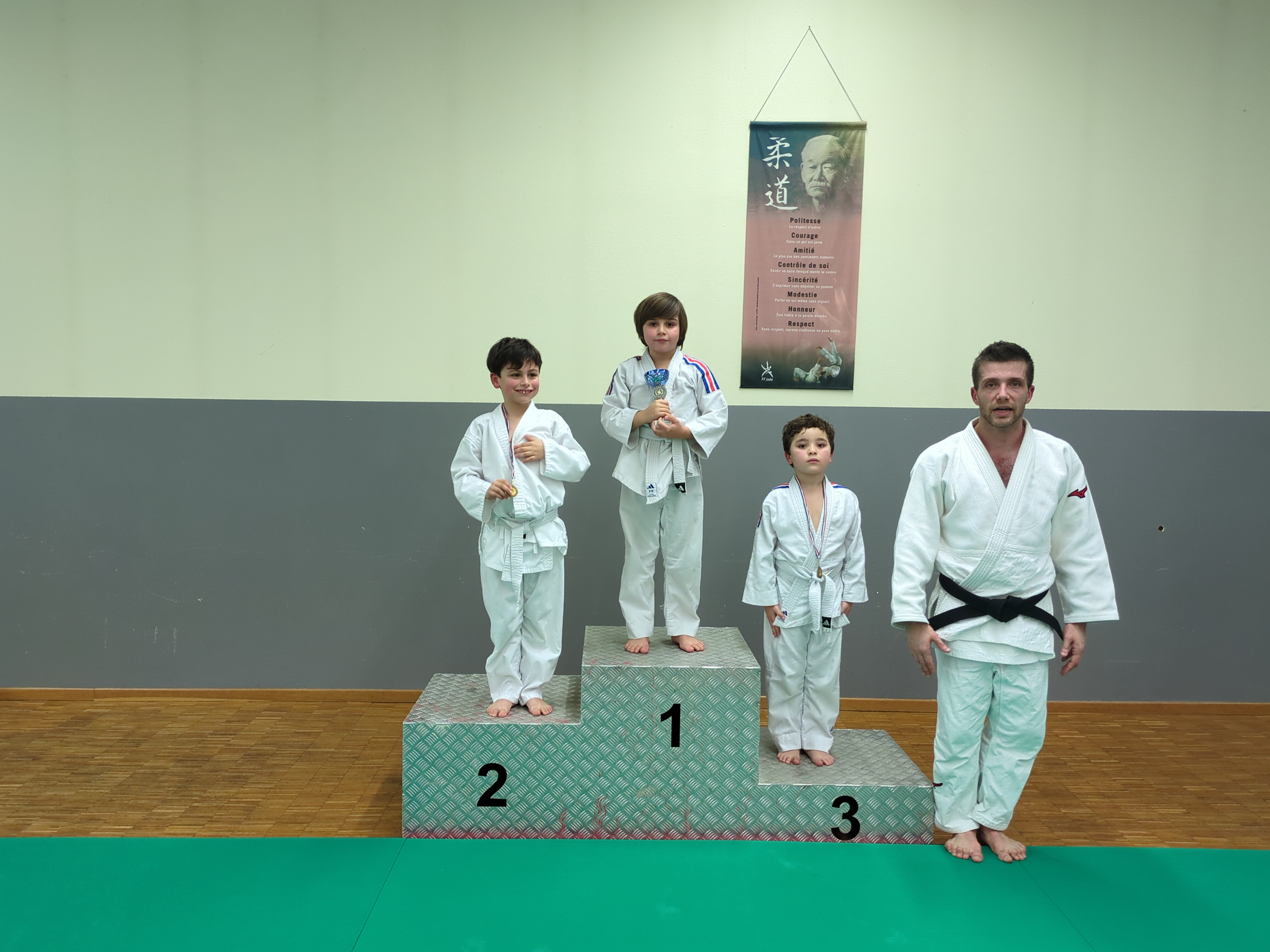 Les judokas petits et grands se sont affrontés dans la bonne humeur lors d’une compétition interne. Les judokas ont été pesés et répartis par poule selon le poids et la taille. Ils ont tous combattus avec bravoure. Chacun est reparti avec une médaille. Bravo à toutes et à tous !