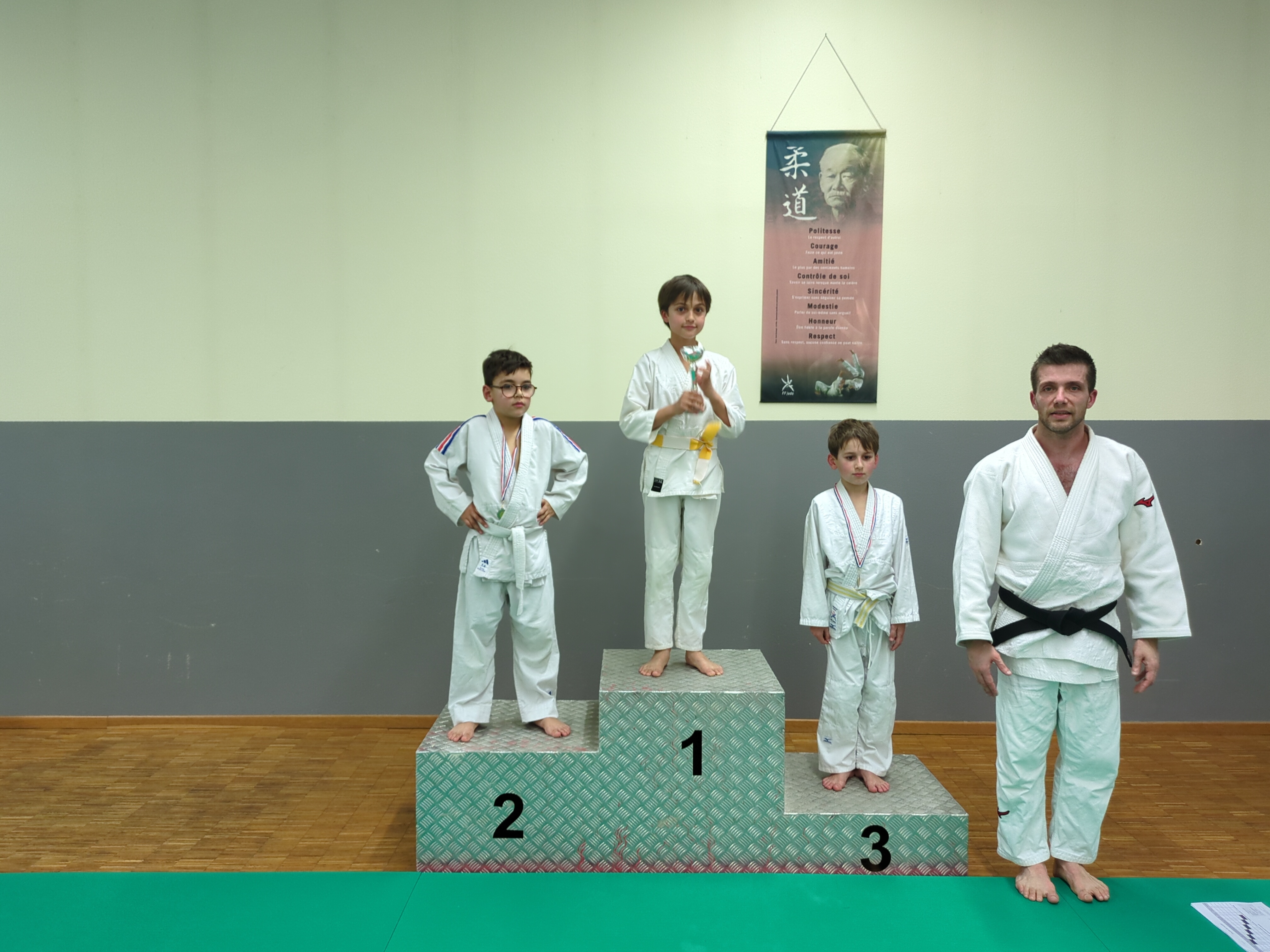 Les judokas petits et grands se sont affrontés dans la bonne humeur lors d’une compétition interne. Les judokas ont été pesés et répartis par poule selon le poids et la taille. Ils ont tous combattus avec bravoure. Chacun est reparti avec une médaille. Bravo à toutes et à tous !