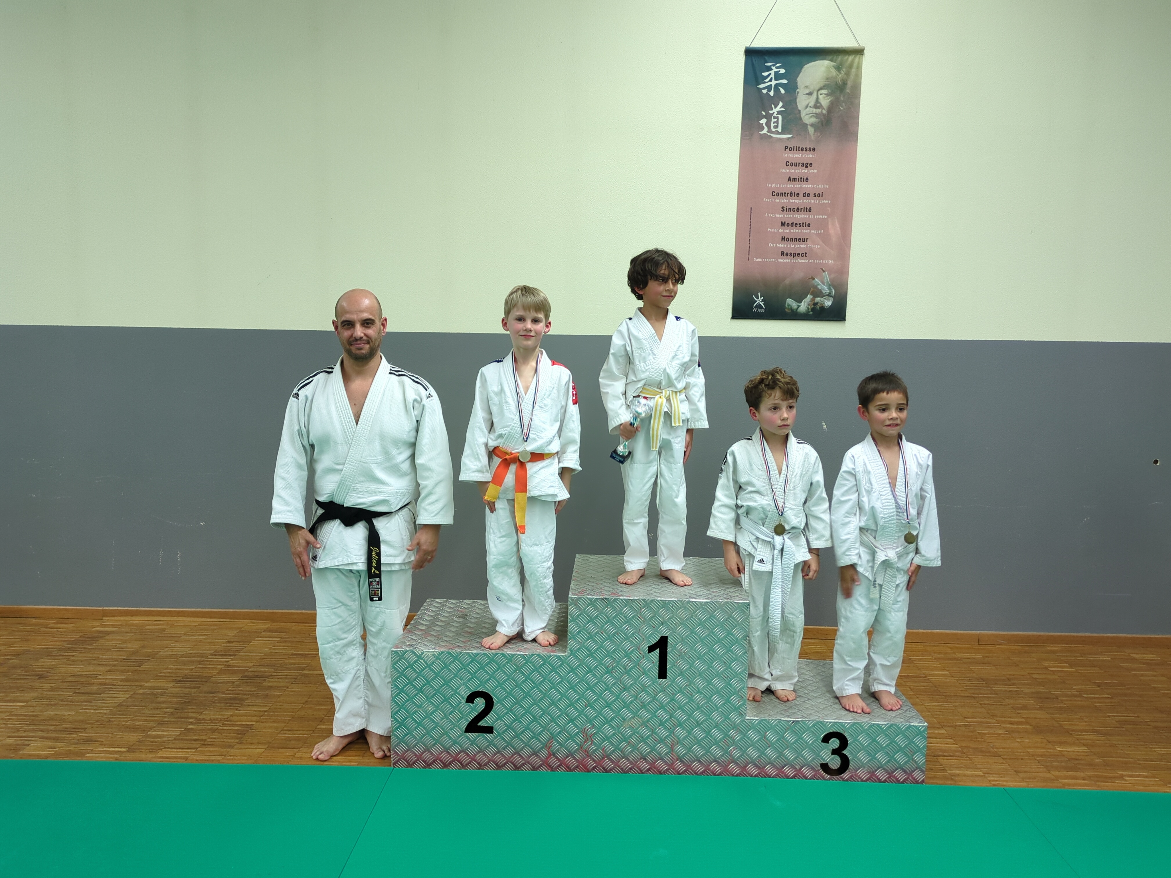 Les judokas petits et grands se sont affrontés dans la bonne humeur lors d’une compétition interne. Les judokas ont été pesés et répartis par poule selon le poids et la taille. Ils ont tous combattus avec bravoure. Chacun est reparti avec une médaille. Bravo à toutes et à tous !