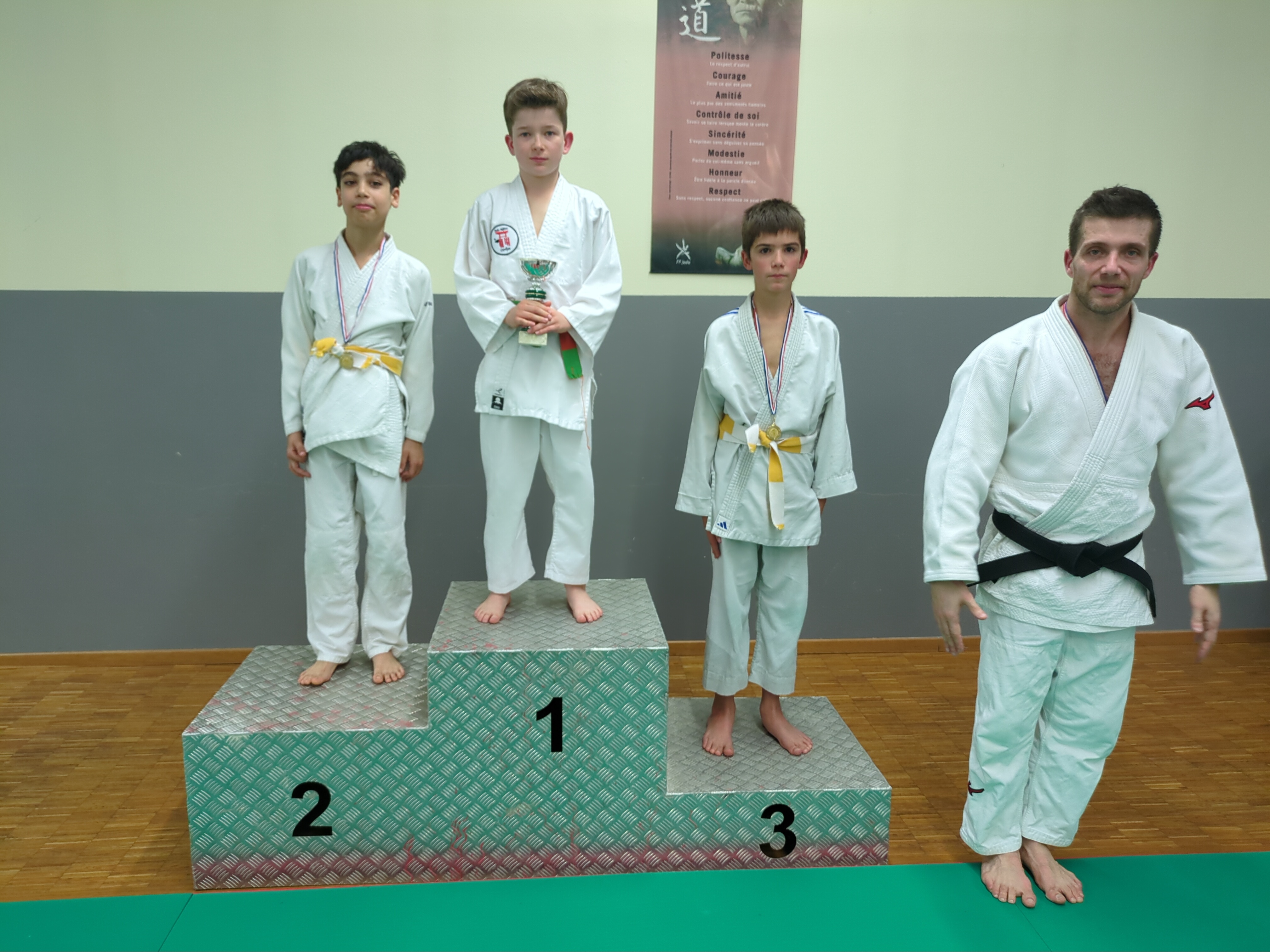 Les judokas petits et grands se sont affrontés dans la bonne humeur lors d’une compétition interne. Les judokas ont été pesés et répartis par poule selon le poids et la taille. Ils ont tous combattus avec bravoure. Chacun est reparti avec une médaille. Bravo à toutes et à tous !