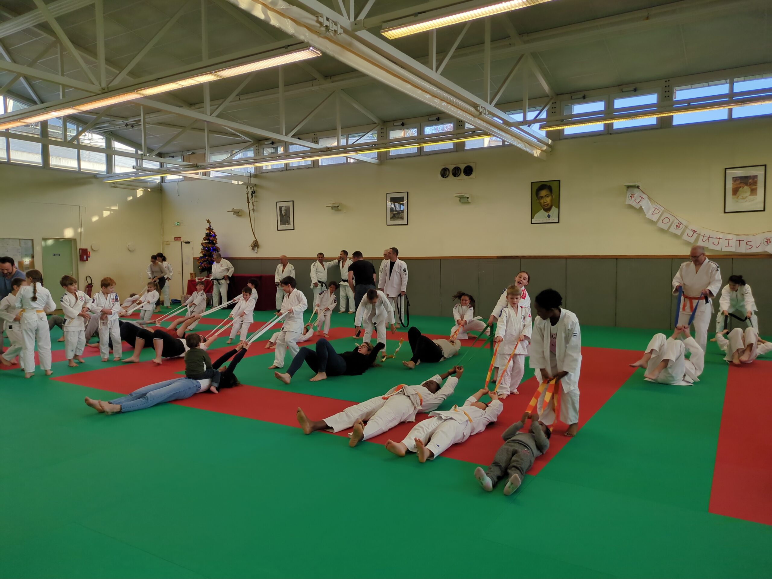 Au programme : taiso et judo parents-enfants, démonstrations de judo des babies aux plus grands, sans oublier l’arrivée du Père Noël et sa distribution de cadeaux ! Un apéritif a clôturé cette belle matinée.