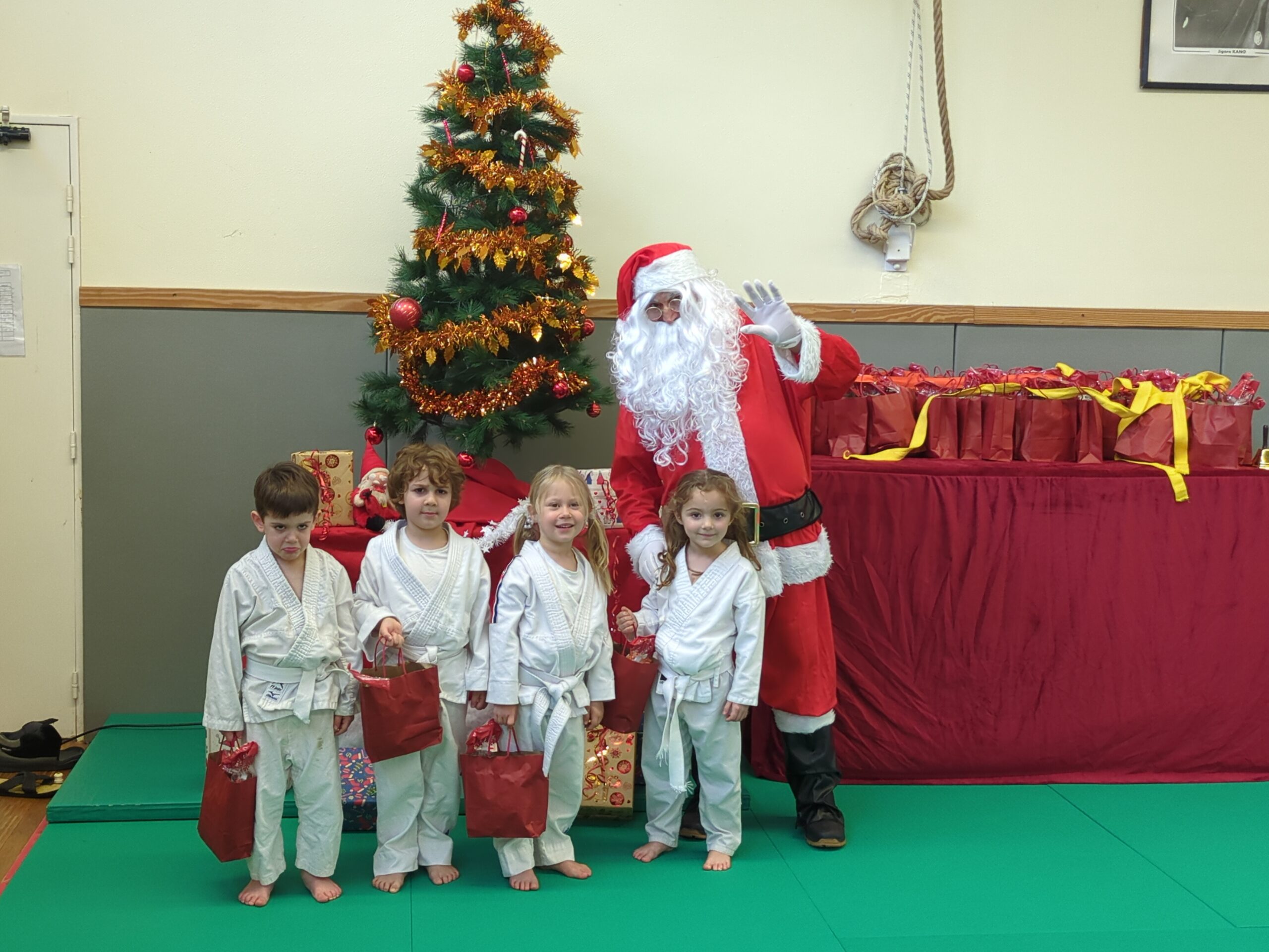 Au programme : taiso et judo parents-enfants, démonstrations de judo des babies aux plus grands, sans oublier l’arrivée du Père Noël et sa distribution de cadeaux ! Un apéritif a clôturé cette belle matinée.