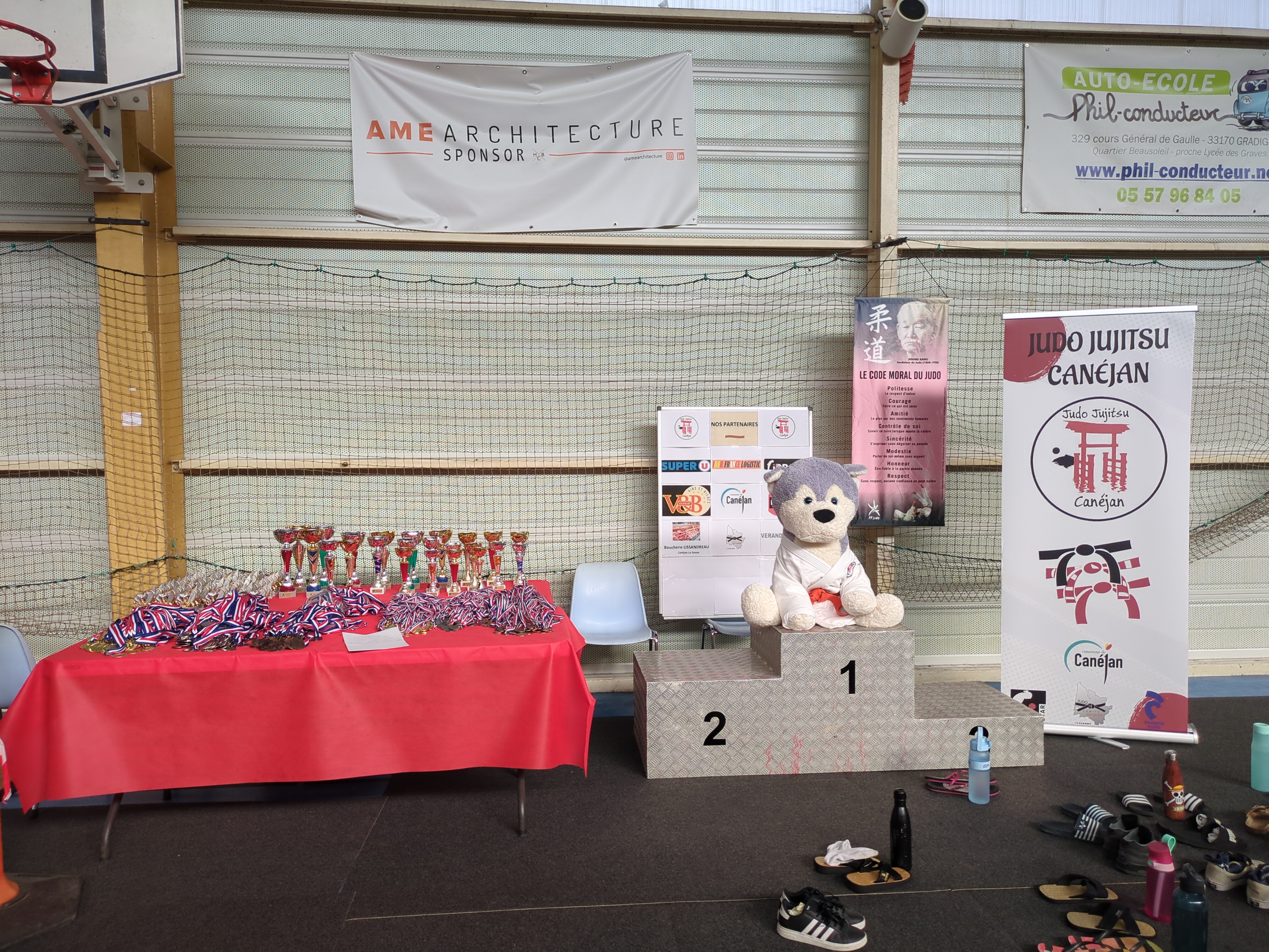 Merci aux champions Jocelyne Triadou, Christine Cicot, Eva Bisseni et Nathan Ruysschaert qui ont remis les médailles et les trophées et à la ville de Canéjan pour la logistique et le prêt des équipements. Merci à tous les bénévoles et à nos champions !